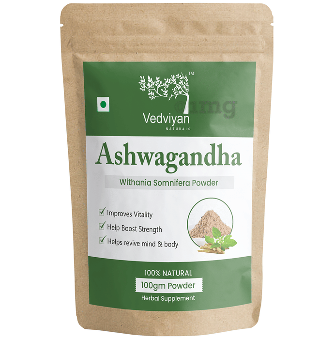 Vedviyan Naturals Ashwagandha Powder is a finely milled herbal supplement made from organic Withania somnifera (Ashwagandha) root powder. As an adaptogen, Ashwagandha can help the body cope with physical and mental stress, and support energy, emotional balance, and immune resilience. Ideal for blending into warm water, milk, or smoothies, this versatile wellness powder may help support vitality, mental clarity, and hormonal harmony as part of the daily ritual. This natural powder is a clean, plant-based solution that can assist stress management and inner balance through Ayurvedic nutrition.