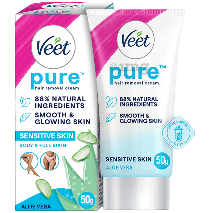 Get smooth skin and the freedom to wear any look, any time with Veet. Veet Pure Hair Removal Cream for Sensitive Skin, enriched with Aloe Vera, is the right solution when going to the salon is not an option. It effectively removes even short stubborn hair and leaves skin moisturized for up to 24 hours*. It can be used on legs, arms, bikini line and underarms for a perfectly finished smooth, moisturized and exfoliated skin. Veet Pure Hair Removal Cream for Sensitive Skin gives you perfect hair removal results in just 5-10 minutes. Follow the steps mentioned on the pack using the spatula provided. Before using the product, please read pack precautions carefully.