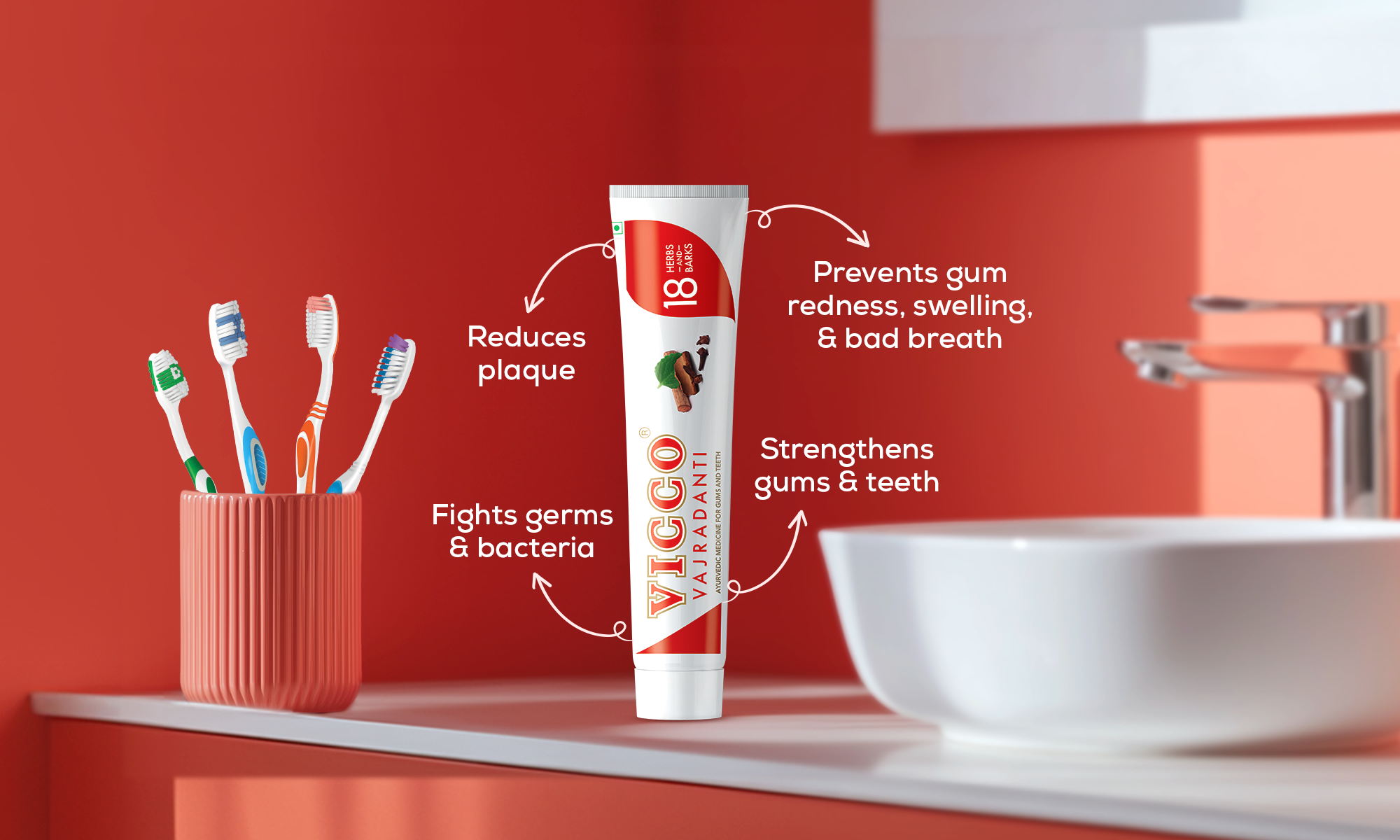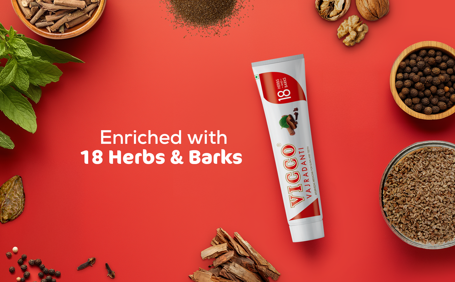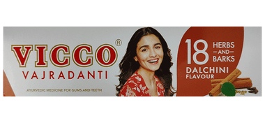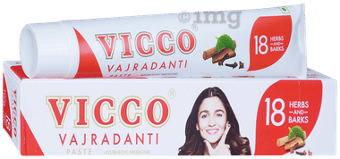 Vicco Vajradanti Toothpaste contains babhul, lavang, and bakul, Babhul works as an astringent on the gums. Vicco toothpaste is made with herbal components and is easy for people to tolerate. It makes teeth white and gums healthy with regular use.