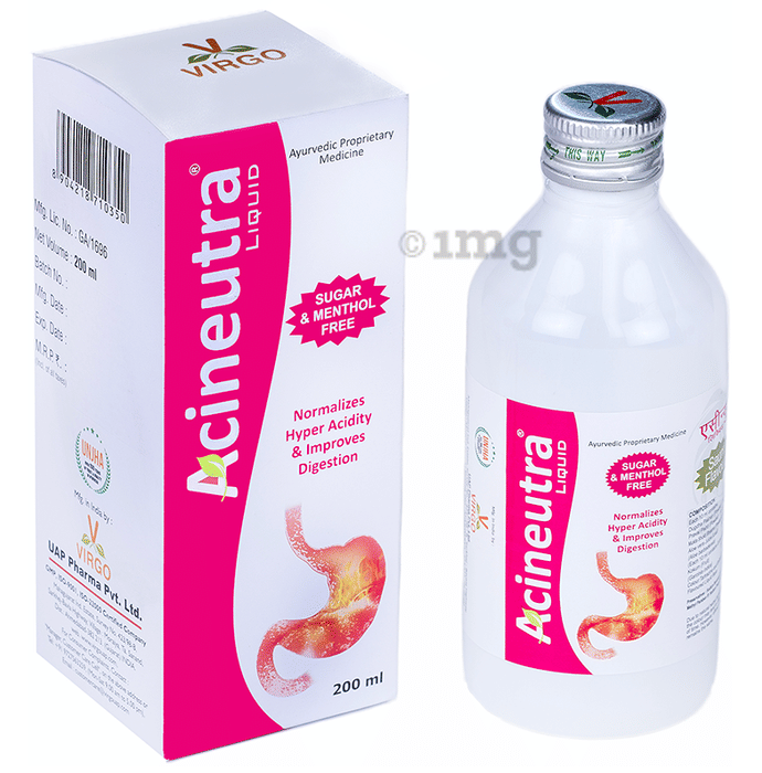 - Virgo Acineutra Liquid helps control acid secretion and neutralizes excess acid in the stomach, which can reduce symptoms of hyperacidity and acid-peptic disorders