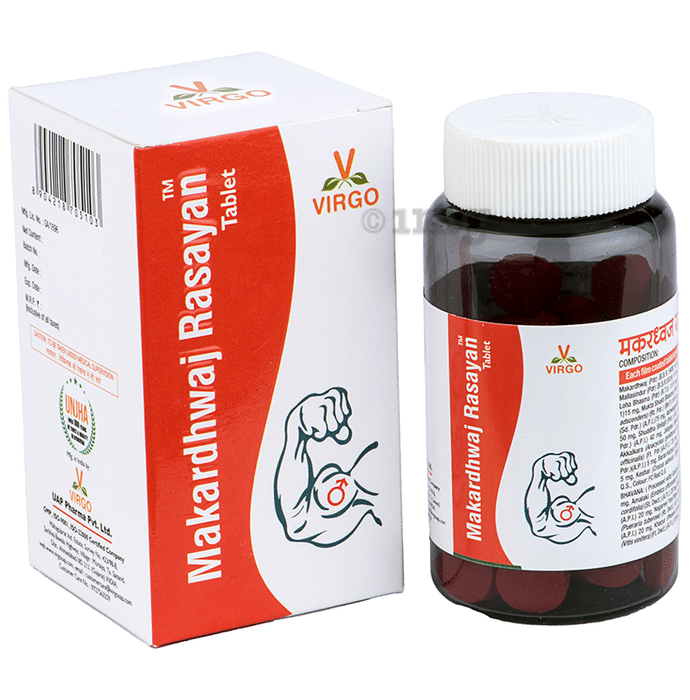 Virgo Makardhwaj Rasayan Tablet is a potent blend of classical formulations and powerful herbs renowned in ayurveda for their rejuvenating properties. This unique combination encompasses makardhwaj, rasasindura, malla sindur, yashad bhasma, loha bhasma, abhrak bhasma, mukta shukti bhasma, along with a meticulously curated selection of herbs like safed musli, ashwagandha, shuddha kaunch beej, and more. Crafted through a meticulous process, this tablet aims to revitalise the body, enhance vitality, and promote overall well-being.