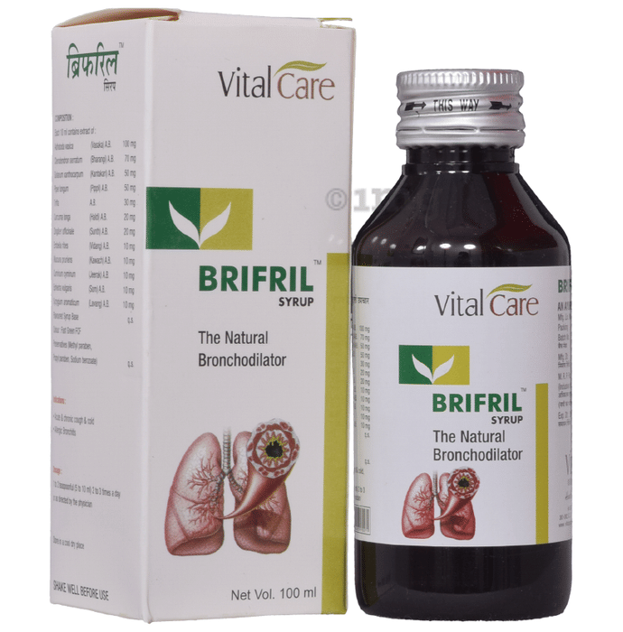 Vital Care Brifril Syrup is a natural bronchodilator developed by Vital Care. It helps dilate small and large airways. It can clear nasal blockages caused by viruses, allergies, or pollutants and relieves spasms.