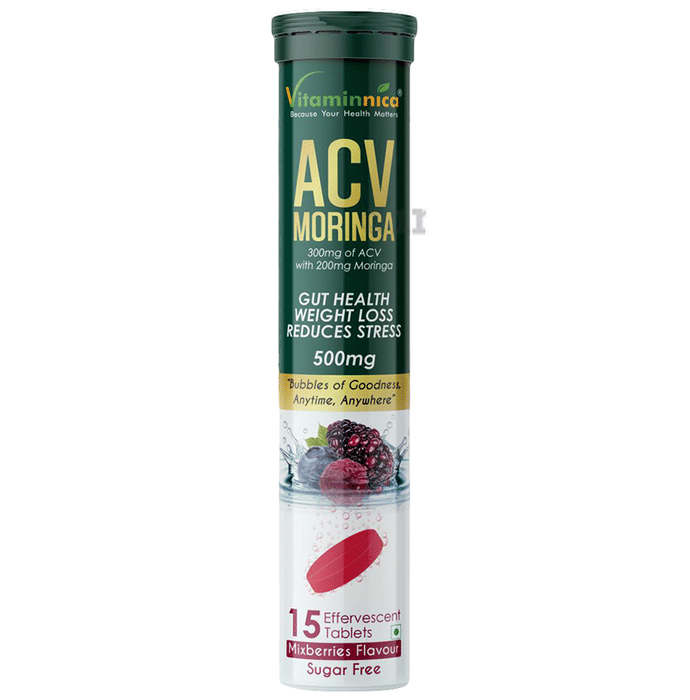 Vitaminnica ACV Moringa Effervescent Tablet Mixberries Sugar-Free is a refreshing and convenient daily wellness supplement combining 300mg of Apple Cider Vinegar and 200mg of Moringa in each tablet. This tablet can help support digestion, metabolism, and energy levels. This dual-action formula is infused with nutrient-rich moringa and tangy apple cider vinegar to help offer a holistic health drink. The tablets are easy to dissolve, provide a fizzy and enjoyable mixberries flavour, and come in a sugar-free format—ideal for those seeking functional nutrition.