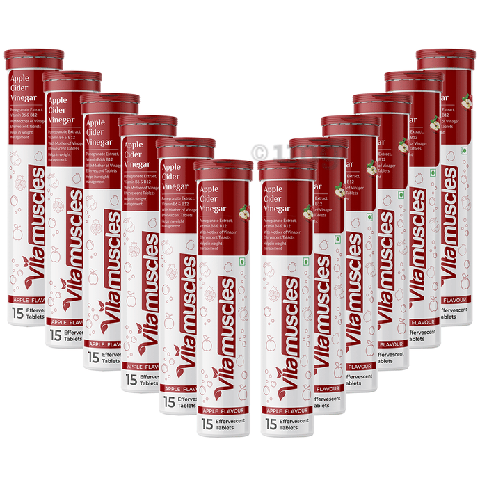 Vitamuscles Apple Cider Vinegar Effervescent Tablet (15 Each) Apple are formulated with apple cider vinegar, pomegranate extract, and essential B vitamins. This plant-based supplement may support dietary routines focused on balanced nutrition and weight management. Pomegranate extract can contribute antioxidant value, while vitamins B6 and B12 help complement daily micronutrient intake. With no added sugar, gluten, or allergens, this effervescent tablet can be included in active or nutrition-conscious lifestyles.