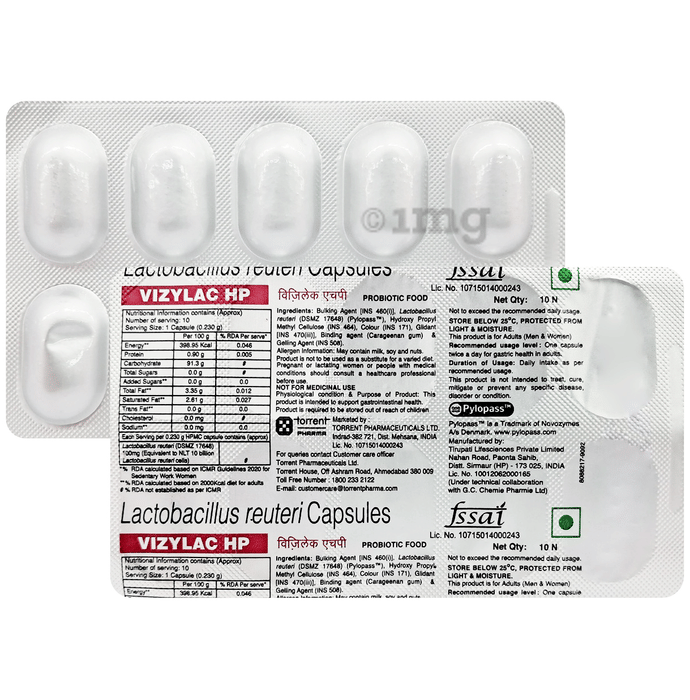 Vizylac HP Capsule is a prebiotic and probiotic capsule which primarily supports digestive health and promotes healthy gut microbiota. It supports healthy digestion and gut balance.