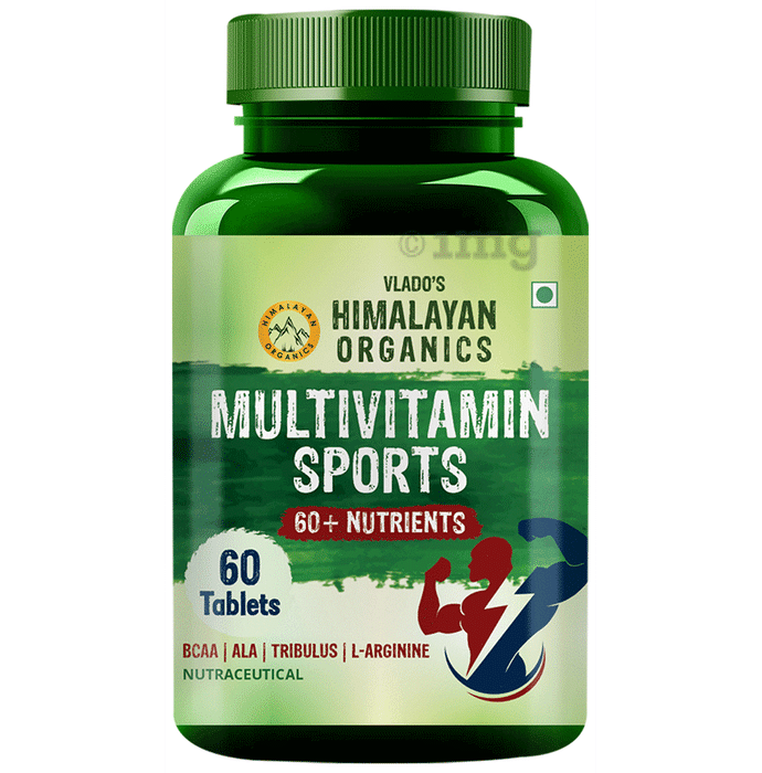 Himalayan Organics Multivitamin Sports Tablet is a balanced combination of crucial vitamins, minerals, and natural extracts that help boost energy, enhance immunity, and maintain sports performance and healthy joints. It is an advanced formula containing 60+ nutrients, 14 performance blends and probiotics. It is formulated for strength training in sports and fitness. This high potency optimum nutrient blend helps build strength, improve focus, boost muscle growth and improve bone health. The tablet is power-packed with essential plant-based ingredients to support an active lifestyle free from fatigue.
