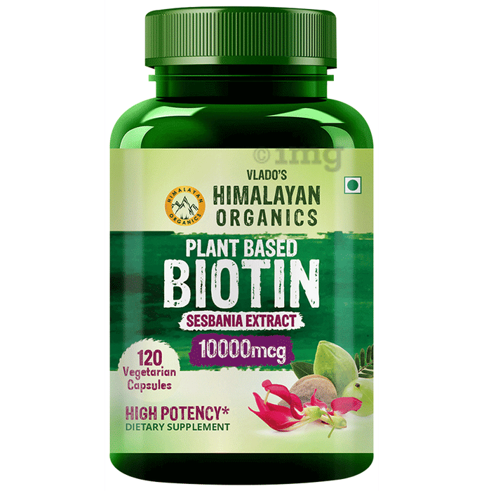 Himalayan Organics Plant Based Biotin 10000mcg Vegetarian Capsule contains Biotin which is a B complex vitamin that metabolizes fats, proteins, and carbohydrates. It facilitates healthier hair growth, glowing skin, and stronger nails. Himalayan Organics Biotin can help fight hair loss, soften and rejuvenate dull, dry skin, and strengthen weak nails, for head to toe natural beauty.