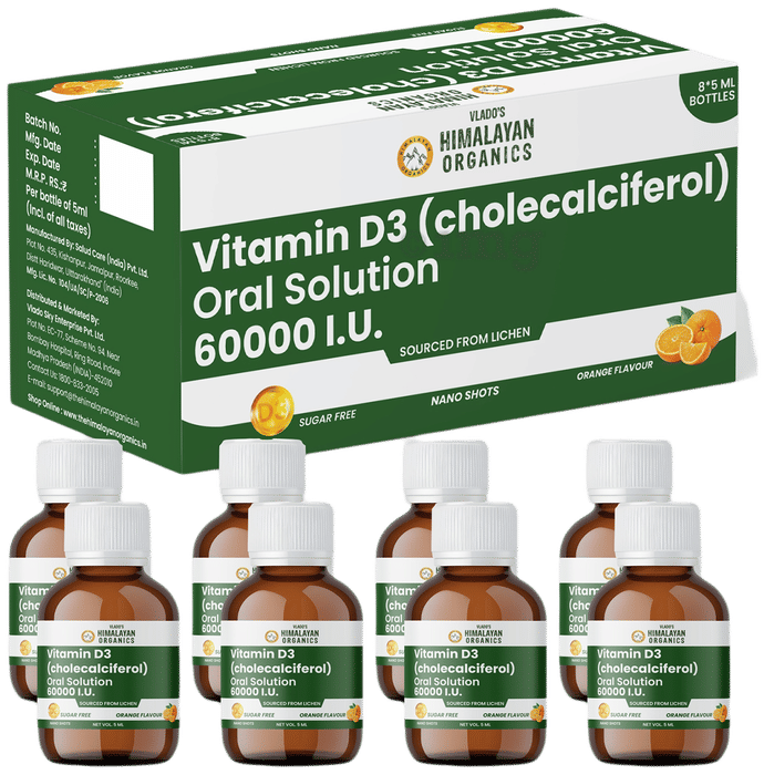 Vlado's Himalayan Organics Vitamin D3 60000 IU nano shots deliver a potent dose of cholecalciferol (Vitamin D3) in an easy-to-consume, fast-absorbing liquid format. With a delicious orange flavor and maximum strength, this highly effective supports bone strength, joint flexibility, muscle performance, and immune strength.