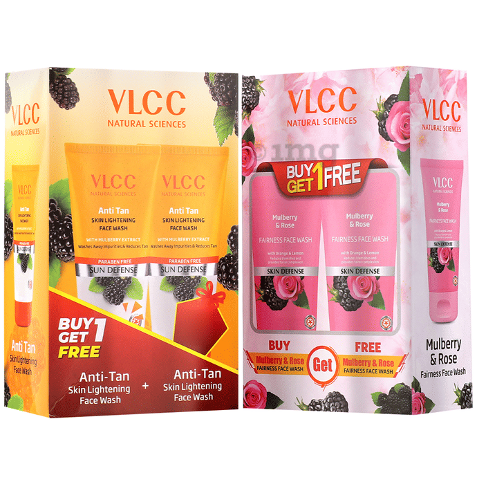 VLCC Combo Kit of AntiTan Skin Lightning Face Wash (150gm) and Mulberry and Rose Face Wash which cleanses the skin.