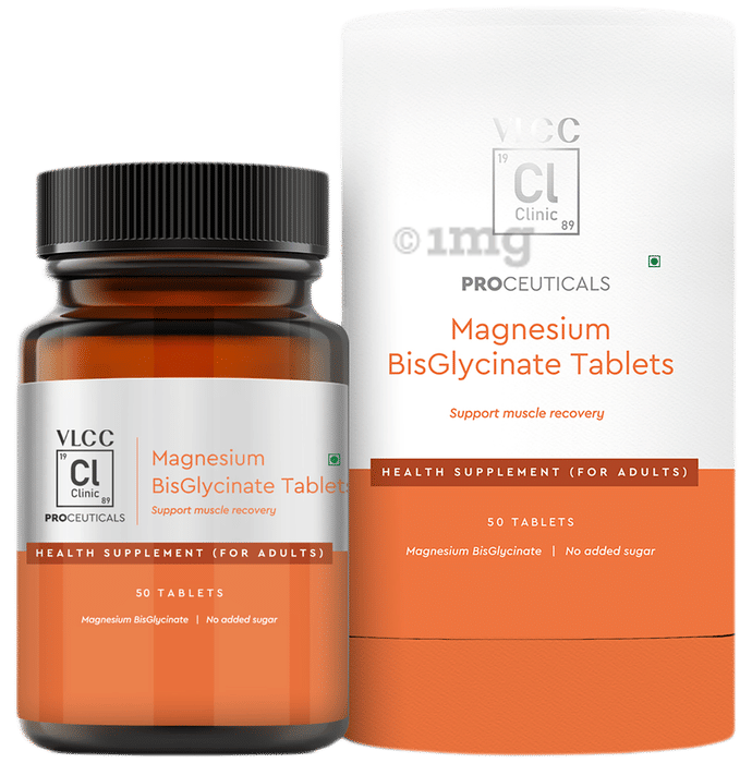 VLCC Clinic Magnesium BisGlycinate Tablet is a health supplement formulated with magnesium bound to glycine, designed for enhanced absorption and better bioavailability. It can help in supporting muscle recovery, maintaining bone strength, and contributing to balanced relaxation. The product can help complement an active lifestyle by providing magnesium in a chelated form that is gentle on the stomach and supportive of daily wellness.