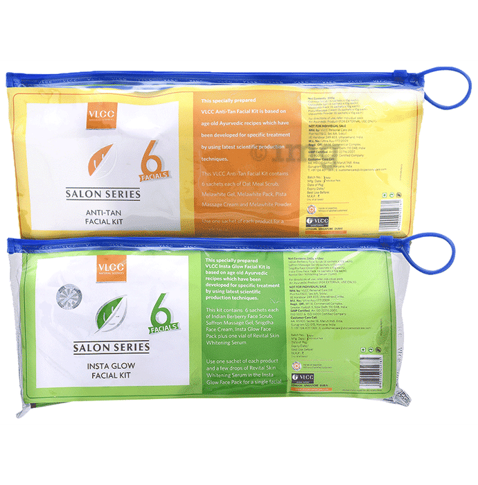 Information about VLCC Combo Pack of Salon Series Anti-Tan Facial Kit (300gm) & Insta Glow Facial Kit (240gm) with Revital Skin Whitening Serum (12ml)