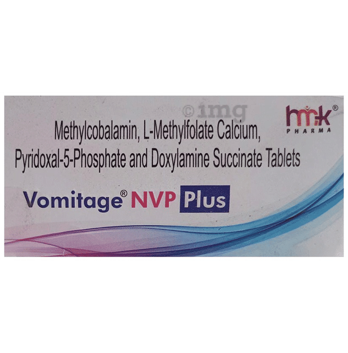 Vomitage NVP Plus Tablet is a dietary supplement that contains methylcobalamin (vitamin B-12), pyridoxal-5 phosphate, L-methylfolate and doylamine succinate. Methylcobalamin helps in the brain, nervous, and energy support in men and women as well as aged people. Besides, methylcobalamin is one of the best sources of vitamin B-12 and is much better than other sources. It helps to improve the nervous system health and may prevent neural damage. The formulation helps to increase the production of red blood cells. It may help to boost energy levels and reduce fatigue.