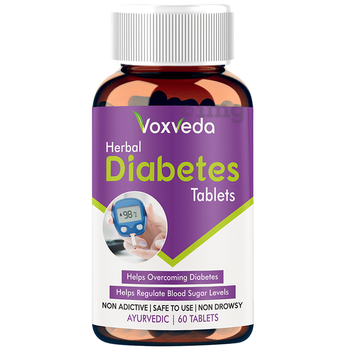 Voxveda Herbal Diabetes Tablet is an herbal formulation intended for nutritional support. It contains neem, karela, jamun, methi and giloy. This ayurvedic tablet is non-addictive, safe to use and non-drowsy.