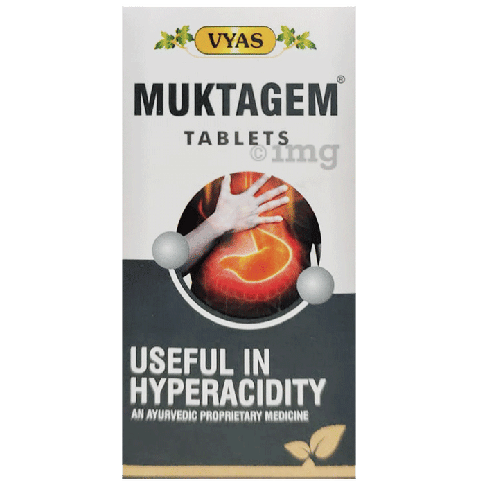 Vyas Muktagem Tablet is an ayurvedic medicine intended to support digestive health and calcium supplementation.