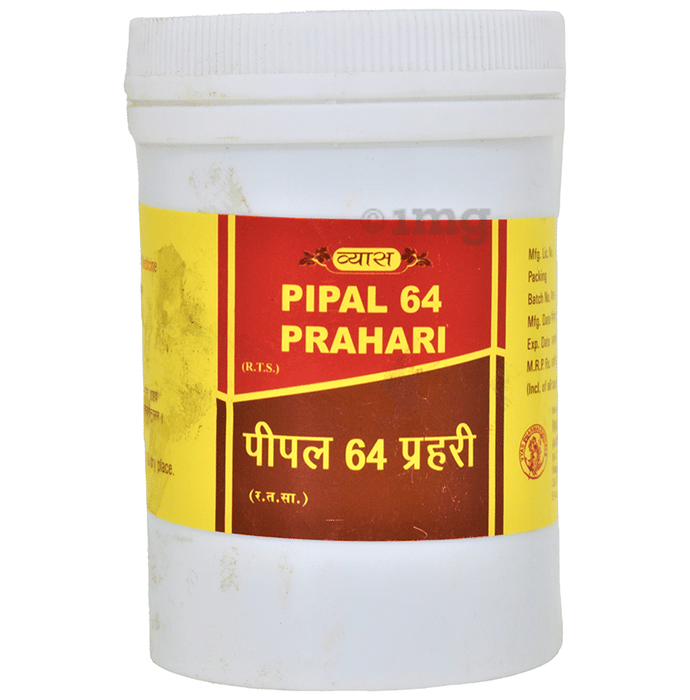 Vyas Pipal 64 Prahari is a potent ayurvedic formula that supports the health and wellness of the entire physique holistically. It may also provide support for general well-being in cases of anaemia. It may also provide relief from the symptoms of fever, cold, and cough.