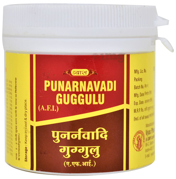 Vyas Punarnavadi Guggulu Tablet is an Ayurvedic tablet supporting the maintenance of kidney, heart, and joint equilibrium and healthy fluid balance in the body.