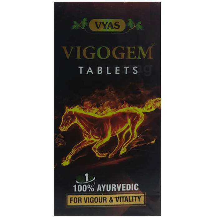 Vyas Vigogem Tablet contains Ashwagandha,Shilajeet, Vidhara, Talmakhana, Akarkara, Kukutandtwak, Jaiphal, Javitri, Loung, Dalchini, Abhark Bhasma, Postdana, Pan, Saunth, Dhashmul, Brahmi, Loha Bhasma, Swarn Banga, Elachi(Big), Khurasani Ajwin, Keshar, Jatamansi, Tejpan, and Pipal as main active ingredients.