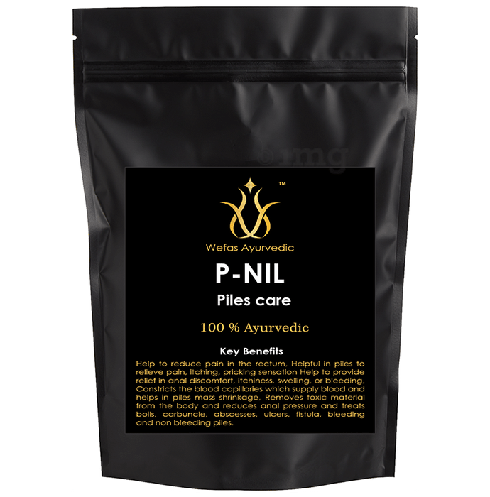 Wefas Ayurvedic P-Nil Piles Care Powder is a proven ayurvedic formula that can help manage piles, and it is used in combating piles haemorrhoids, fissures and fistula. It can help relieve anorectic diseases and softens the hard stools. It can help compress the pile mass's size, control bleeding, healmed skin, and s, and sootheucous membrane. It gives immediate relief from rectal bleeding, pain, itchiness and flatulence.