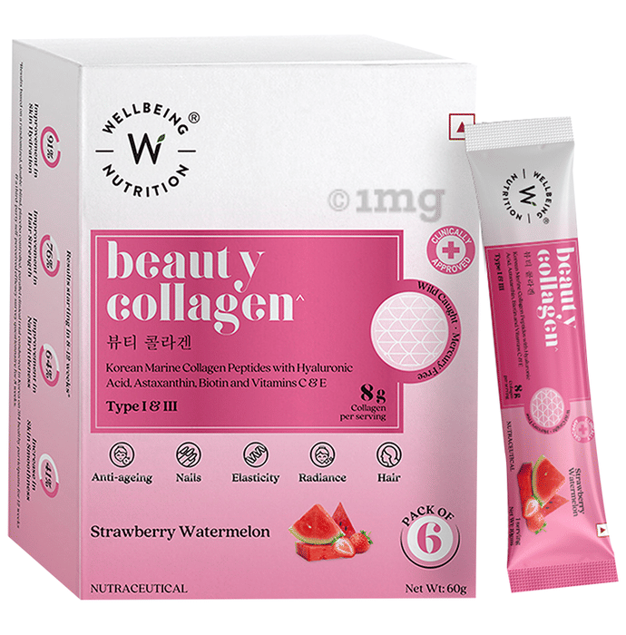 Information about Wellbeing Nutrition Beauty Collagen Type I & III Sachet (8gm Each) Strawberry Watermelon