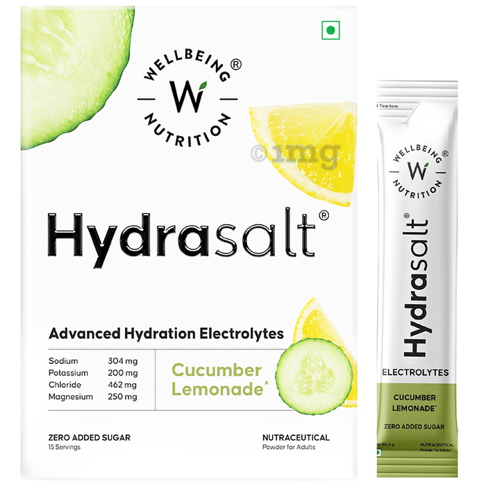 Information about Wellbeing Nutrition Hydrasalt Advanced Hydration Electrolytes Sachet (6gm Each) Cucumber Lemonade Zero Added Sugar