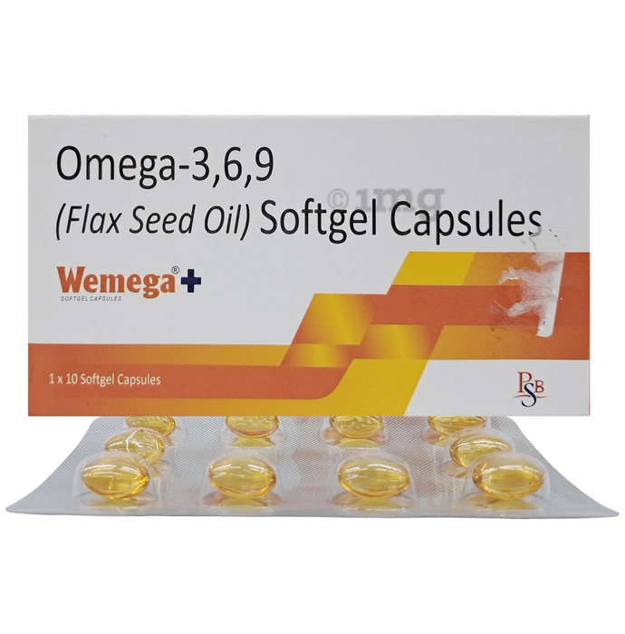 Wemega Plus Softgel contains docosahexaenoic acid (DHA) and eicosapentaenoic acid (EPA). Omega-3, 6, 9 fatty acids are essential nutrients.