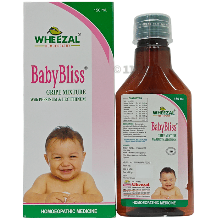 Wheezal Baby Bliss Syrup is indicated for treating various digestive problems, dysentery, flatulency, diarrhoea, hiccups and teething pain.