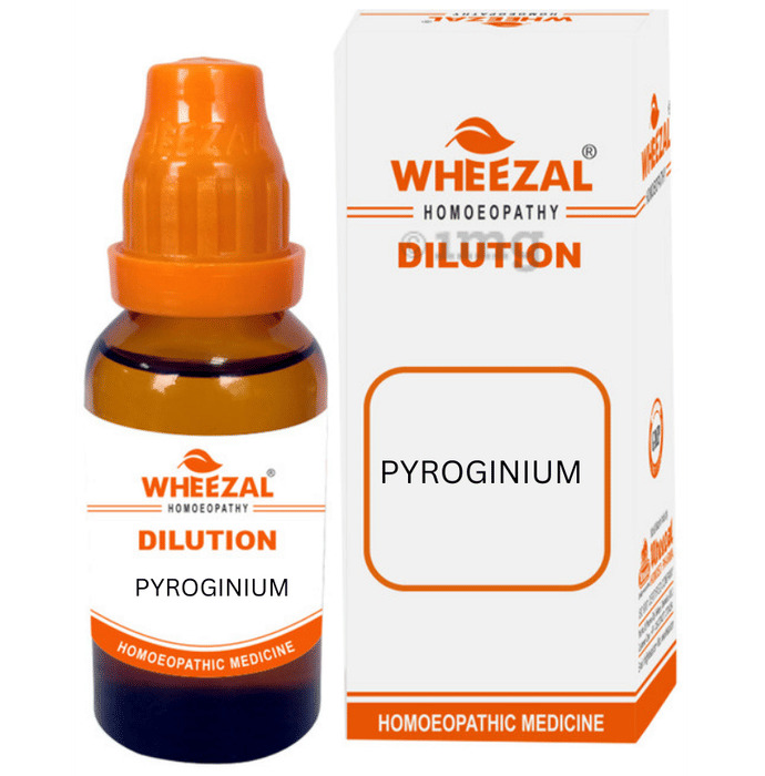 Wheezal Pyroginium Dilution 200 Wheezal Dilution Pyrogenium is a homeopathic remedy prepared from decomposed lean meat. It is primarily used for addressing septic conditions and various infections. It also aids in dealing with infections. Key Ingredients: Pyrogenium Key Benefits: