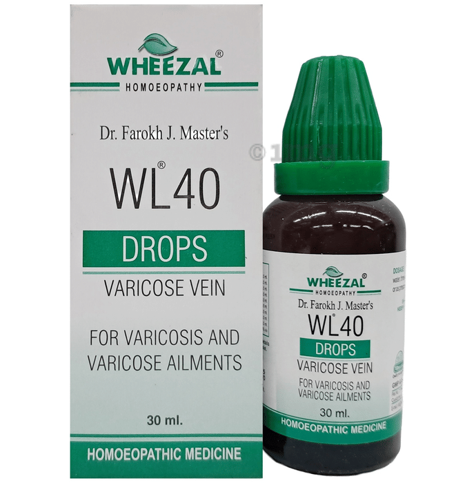 Wheezal WL40 Varicose Veins Drop is a homoeopathic remedy chiefly used for dealing with conditions associated with varicose veins without causing any adverse side effects. Varicose veins refer to a condition where veins found at the back of the calves or inside the legs swell up or are enlarged causing pain and discomfort. Its appearance is usually dark purple or blue and looks twisted and bulging. It may also cause the surface of the skin to become itchy.