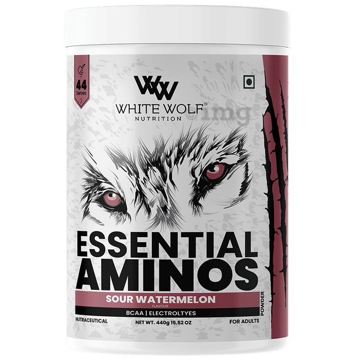 White Wolf Essential Aminos Powder Sour Watermelon is a vegetarian amino acid complex designed to help fuel muscle performance, hydration, and post-workout recovery. It combines a full spectrum of Essential Amino Acids (EAAs) and Branched Chain Amino Acids (BCAAs) in a 2:1:1 ratio to support endurance, strength, and muscle repair. Enriched with vital electrolytes for focused energy, this intra- and post-workout formula supports athletes and active individuals, which may help support sustained performance. The delicious Sour Watermelon flavour ensures a refreshing experience with every scoop.
