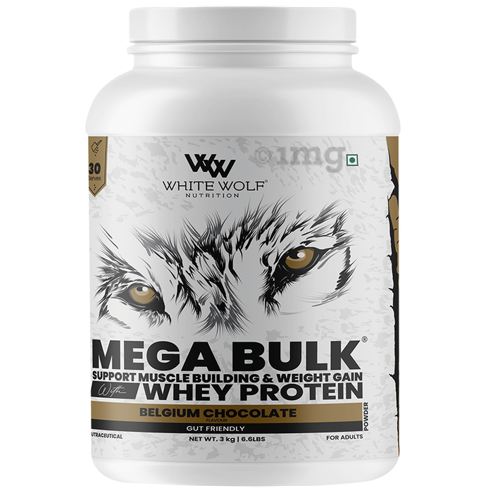 White Wolf Mega Bulk Support Muscle Building & Weight Gain Whey Protein Powder Belgium Chocolate is a nutritional supplement formulated to help support individuals with higher energy and protein requirements. Designed with a balanced blend of whey protein isolate, maltodextrin, skimmed milk powder, and a combination of supportive nutrients like creatine monohydrate and L-glutamine, this formula can complement the dietary needs of active adults, athletes, and those with fast metabolisms. Each serving offers a mix of macronutrients and micronutrients, combined with essential amino acids that may help provide nutritional support during strength-focused activity, prolonged training, or calorie-dense diet requirements. This flvaoured vegetarian product is an easy-to-consume shake option to supplement daily calorie intake and support workout routines.
