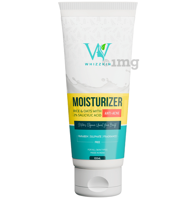 Whizzkin Anti Acne Moisturizer is a lightweight and non-greasy formula designed to help hydrate and nourish the skin while assisting in managing acne and excess oil. Infused with Hyaluronic Acid, Aloe Vera, Rice, and Oats Extracts, it may help soothe irritation, soften the skin, and maintain moisture balance. The addition of Salicylic Acid may assist in unclogging pores and managing breakouts. This moisturizer can absorb quickly without leaving residue, making it suitable for all skin types. Free from parabens, sulphates, and artificial fragrances, it can be suitable for daily use.