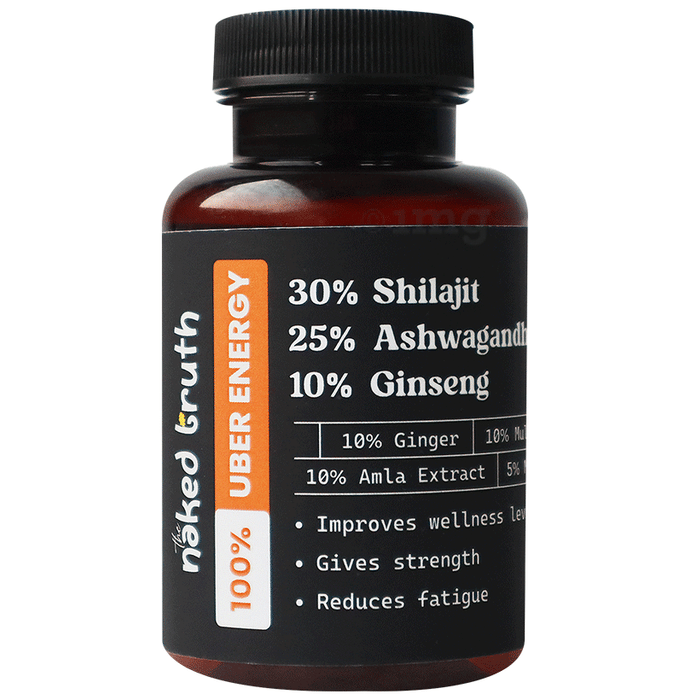Wild Oak The Naked Truth Uber Energy Capsule for Men combine the natural goodness of Himalayan Shilajit, Ashwagandha, Ginseng, Ginger, Amla, and Moringa to support energy levels and overall wellness. This plant-based, hypoallergenic formula may assist in reducing fatigue and improving strength. With no added chemicals or preservatives, it is designed to fit into a balanced lifestyle. Suitable for sustained energy, this nutraceutical product is crafted with care and adheres to GMP-certified manufacturing practices.