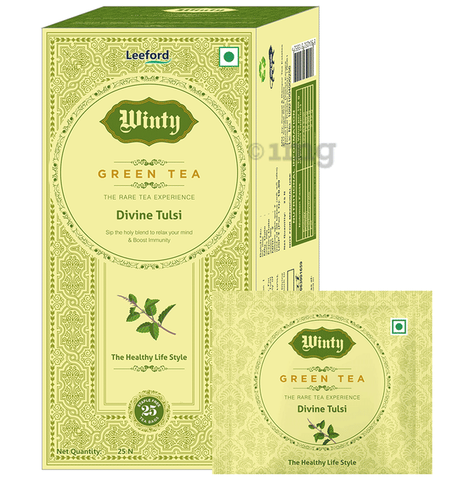 Winty Green Tea Divine Tulsi A rich and vintage charm of Kangra brings you the goodness of Tulsi, infused in Leefords Winty Divine Tulsi Green Tea, which is highly rich in antioxidants, detoxifies the body by flushing out toxins, boosts metabolism that helps in encouraging fat loss and also helps in relaxing your body and mind. The zero-calorie green tea not only intensifies metabolism but also provides energy.