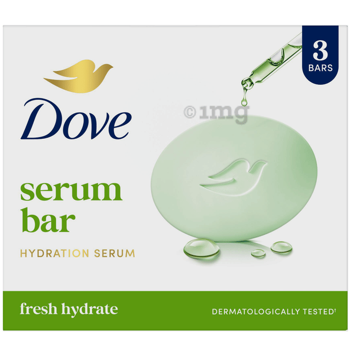 Dove Hydration Serum Bar (125gm Each) is a dermatologically tested bathing bar formulated to gently cleanse the skin while helping to maintain its natural moisture. Enriched with a hydration serum, it supports a fresh and comfortable skin feel after every wash. The mild cleansing base helps remove daily impurities without making the skin feel dry or tight. The bar may assist in keeping the skin soft, smooth, and refreshed throughout the day. Its gentle formulation makes it suitable for everyday bathing and regular skin care routines.