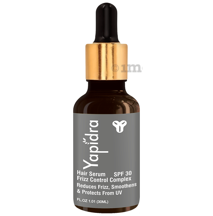 Yapidra Frizz Control Complex Hair Serum is crafted to support smoother, shinier, and manageable hair. Infused with a unique Frizz Control Complex and SPF 30, it may support hair from UV exposure while sealing in moisture. This lightweight formula may help maintain softness, elasticity, and a sleek finish without greasy residue. It can be applied before styling or post-wash, making it suitable for daily use. Designed to help tame flyaways, provide smoothness, and add a glossy finish, it supports effortless hair care.