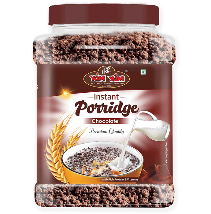 Yum Yum Instant Porridge Premium Quality Chocolate is a ready-to-eat pre-cooked meal in various flavours. Itβs a treat for people who need a fibre-rich diet. It is really tasty and healthy which even the kids love. It contains all the natural ingredients from a health perspective, this ready-to-eat porridge is a source of dietary fibre, calcium, vitamin iron, folic acid.