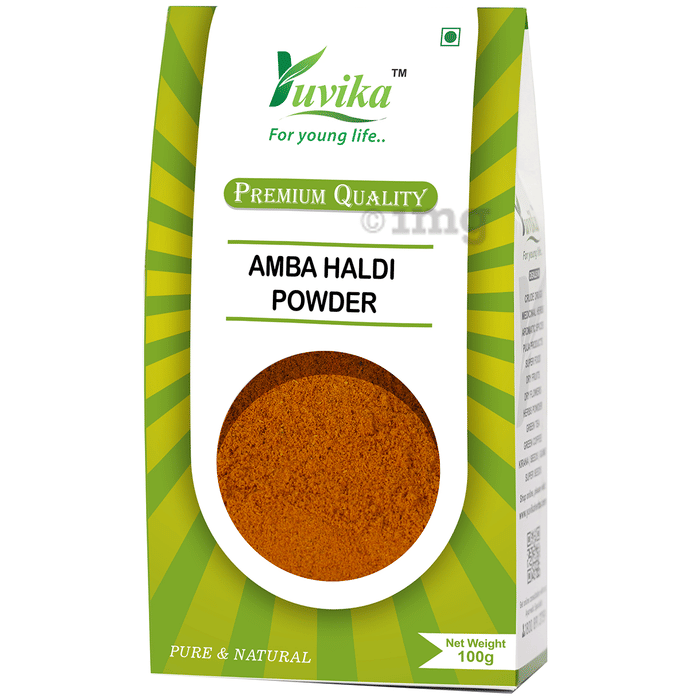 Yuvika Amba Haldi Powder - Jangli Haldi - Curcuma Aromatica - Wild Turmeric Powder helps to achieve healthy skin by combating unwanted facial hair, dark circles, and acne. In addition to this, the product contains antibacterial, antimicrobial and carminative properties.