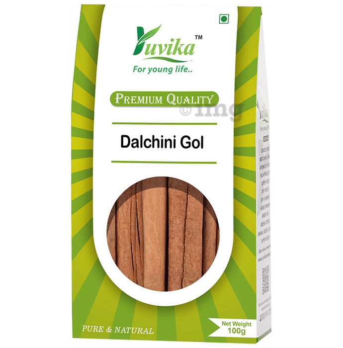 Yuvika Dalchini Gol is a premium-quality Ayurvedic product derived from natural sources, formulated to support holistic health and wellness. Known for its warming properties, Dalchini (Cinnamon) has been used for centuries in traditional Ayurveda for its numerous health benefits. It is recognised for its role in improving digestion, supporting respiratory health, and providing antioxidant benefits. This natural product is processed under quality-controlled conditions, ensuring purity and potency, and it is free from any artificial additives or preservatives.