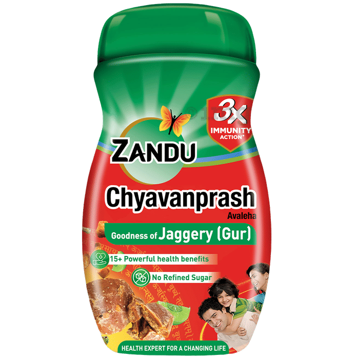 It is made with 39 precious Ayurvedic Herbs and is scientifically proven for 2X immunity. Jaggery contains several added health benefits and is rich in minerals and micro-nutrients. It is also proven to help improve respiratory health. It can be consumed universally across all age groups and a spoon a day helps improve your immunity and keeps you energetic throughout the day. Made with 100 years of Ayurvedic wisdom of Zandu, regular consumption of Zandu Chyavanprash keeps your family healthy so that they can stay protected from illnesses and be ready to face tomorrows challenges effectively.