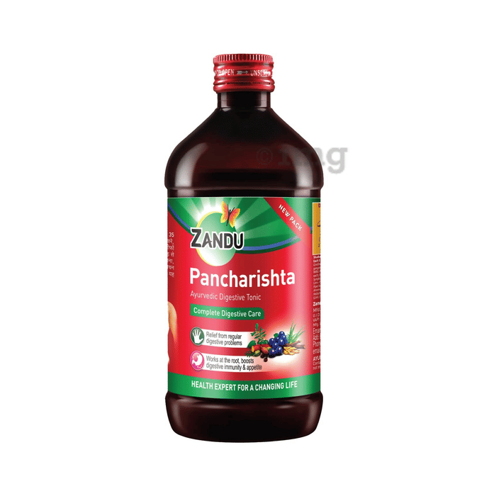Zandu Pancharishta works on the seven digestive centres- salivary glands, stomach, liver, gall bladder, pancreas, small intestine and large intestine and helps improve digestive health.