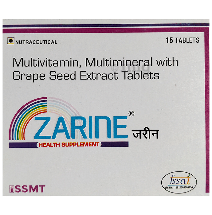 Zarine Tablet is an oral supplement which can help manage vitamin and mineral deficiency in the body. It contains ingredients such as Grape Seed Extract, Vitamin C, and Biotin, which can help maintain skin clarity, hydration, and support the body's nutritional balance. This formula can help individuals seeking to manage uneven skin texture, dullness, and maintain healthy skin from within.