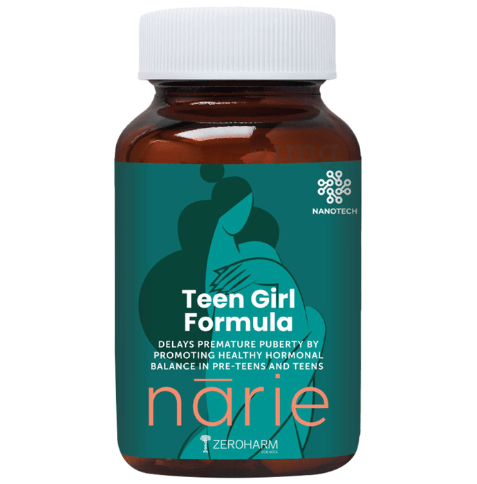 Zeroharm Sciences Narie Teen Girl Formula Tablet is a plant-based supplement powered with Shatavari, devdaru, ashoka, black cohosh, and chaste berry to promote hormonal balance, prevent early puberty, support smooth puberty transition and assist in dealing with physiological and emotional puberty changes.