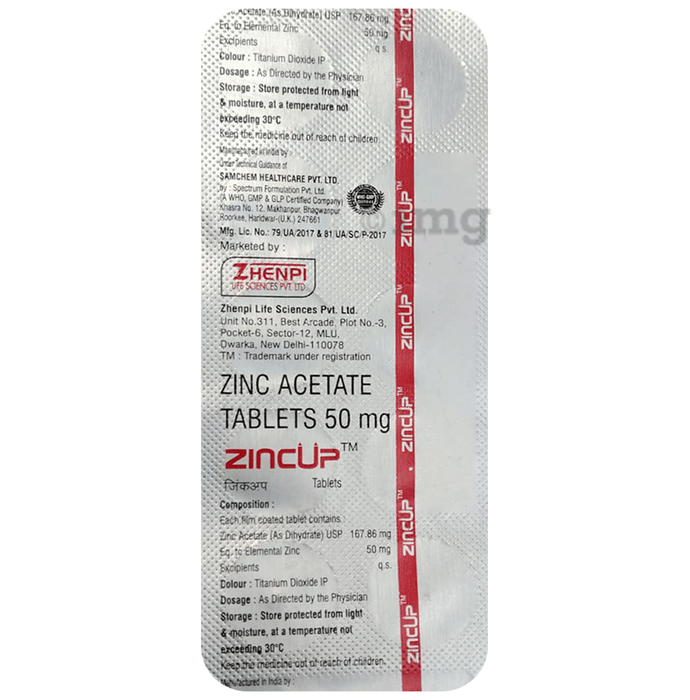 Zincup Tablet helps to boost your immunity and is also used to manage zinc deficiency. It contains zinc as its active component. Zinc is essential for the normal development and function of cells. It also plays a significant role in wound healing. It also supports normal growth and development during childhood, adolescence and pregnancy and is also required for a proper sense of taste and smell.