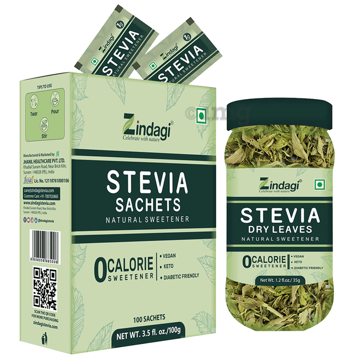 Information about Zindagi Combo Pack of Stevia Leaves (35gm Each) & Stevia Sachets (100 Each)