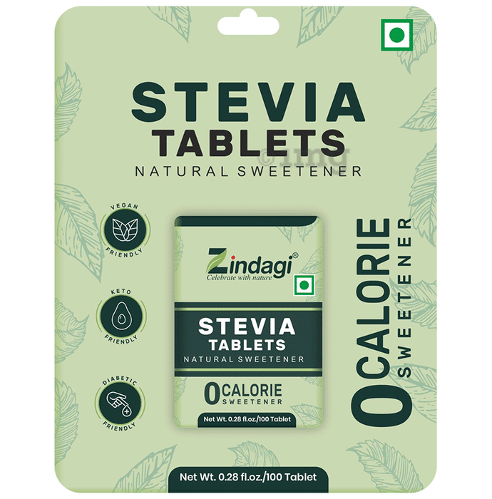 Zindagi Stevia Tablet is a sugar-free tablet that can be used as a replacement for cane sugar. It does not contain artificial sweeteners and chemicals like lactose and may aid in weight management.